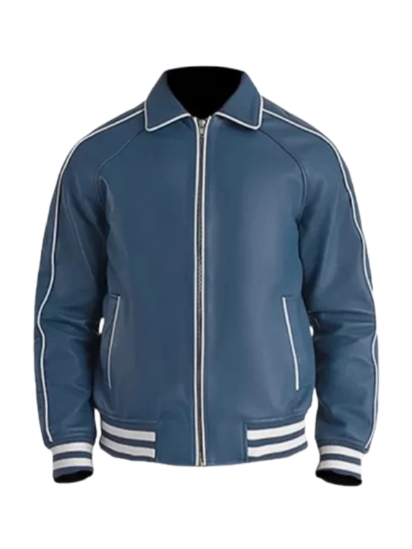 Material: Lambskin Leather Inner: Soft Viscose Lining Front: Zipper Closure Collar: Shirt Style collar Color: Blue